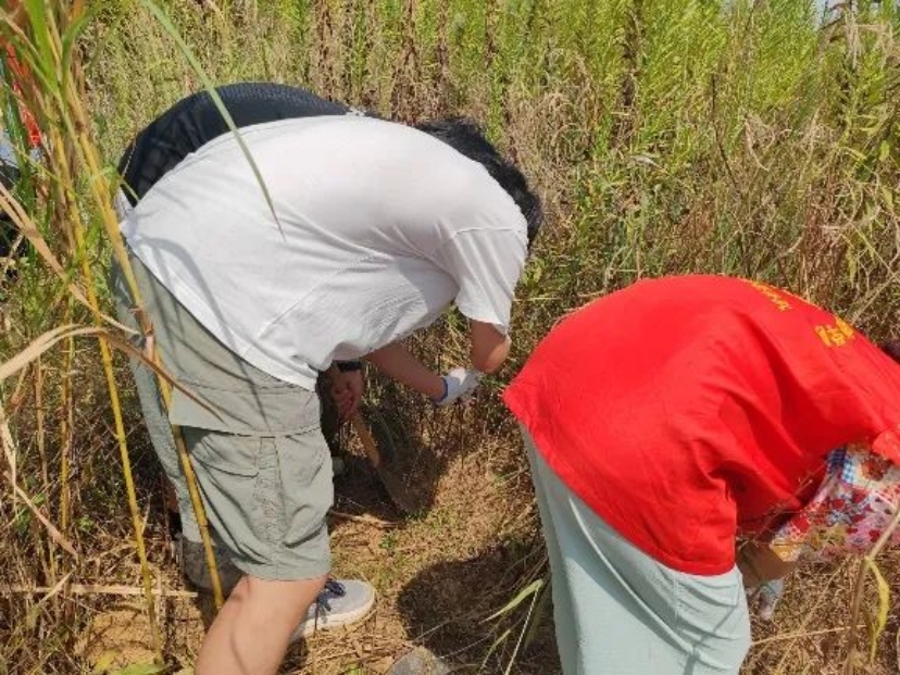 活动随后进入实地勘察阶段。在专业人士的指导下,志愿者们仔细搜寻红火蚁的巢穴并进行标识。接着,他们使用环保型杀虫剂有序地进行药物喷洒,有效地控制了红火蚁的种群密度。与此同时,面对繁茂生长的加拿大一枝黄花,志愿者们依据所学的辨别方法,在不破坏土壤环境的前提下对其进行“精准打击”。